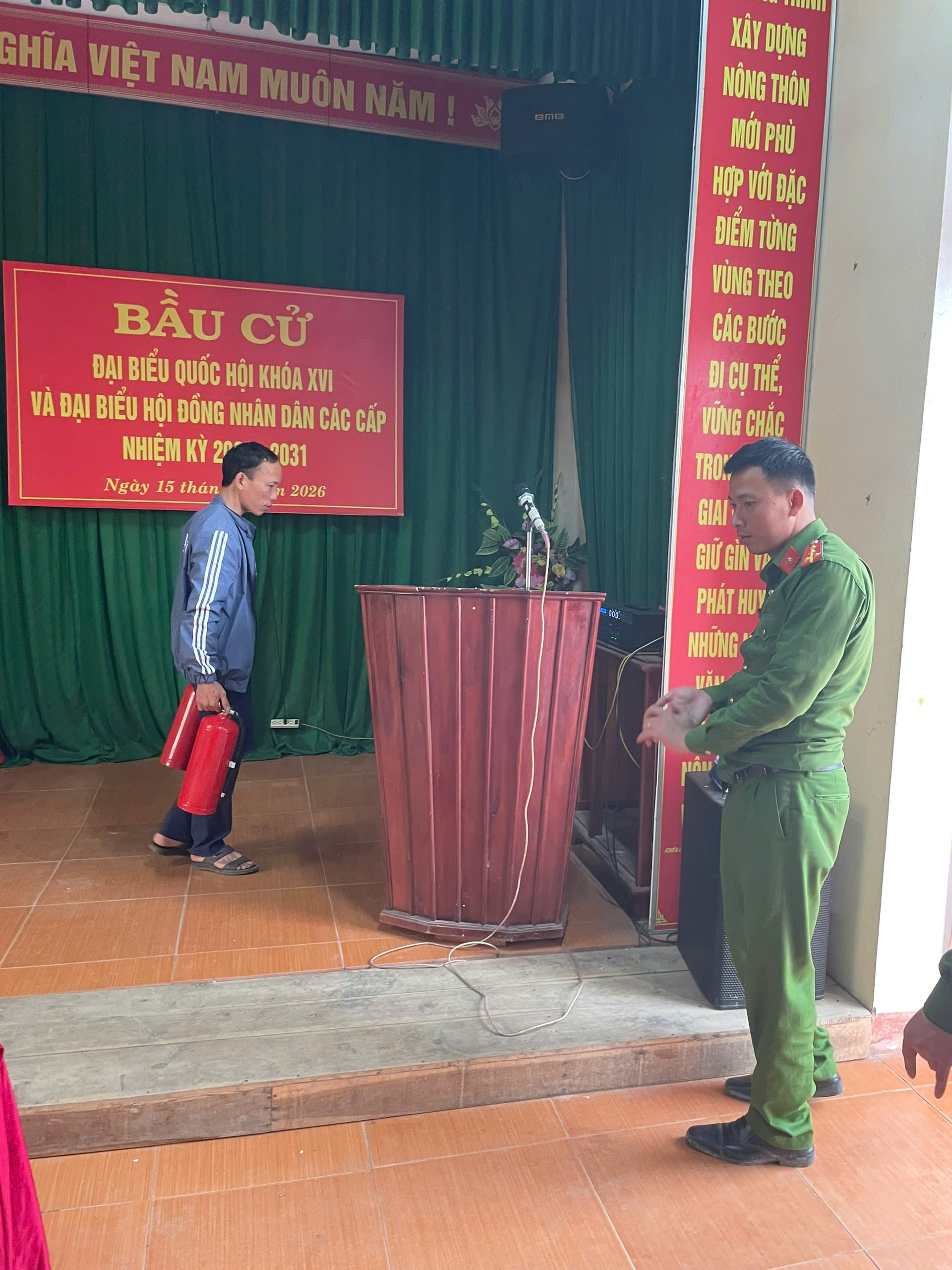 Theo đó, lực lượng Công an xã phối hợp với các tổ bầu cử tiến hành kiểm tra, rà soát các điều kiện an toàn PCCC tại các nhà văn hóa, địa điểm tổ chức bỏ phiếu. Nội dung kiểm tra tập trung vào hệ thống điện, lối thoát nạn, việc bố trí phương tiện chữa cháy tại chỗ và các điều kiện bảo đảm an toàn phòng cháy, chữa cháy theo quy định.