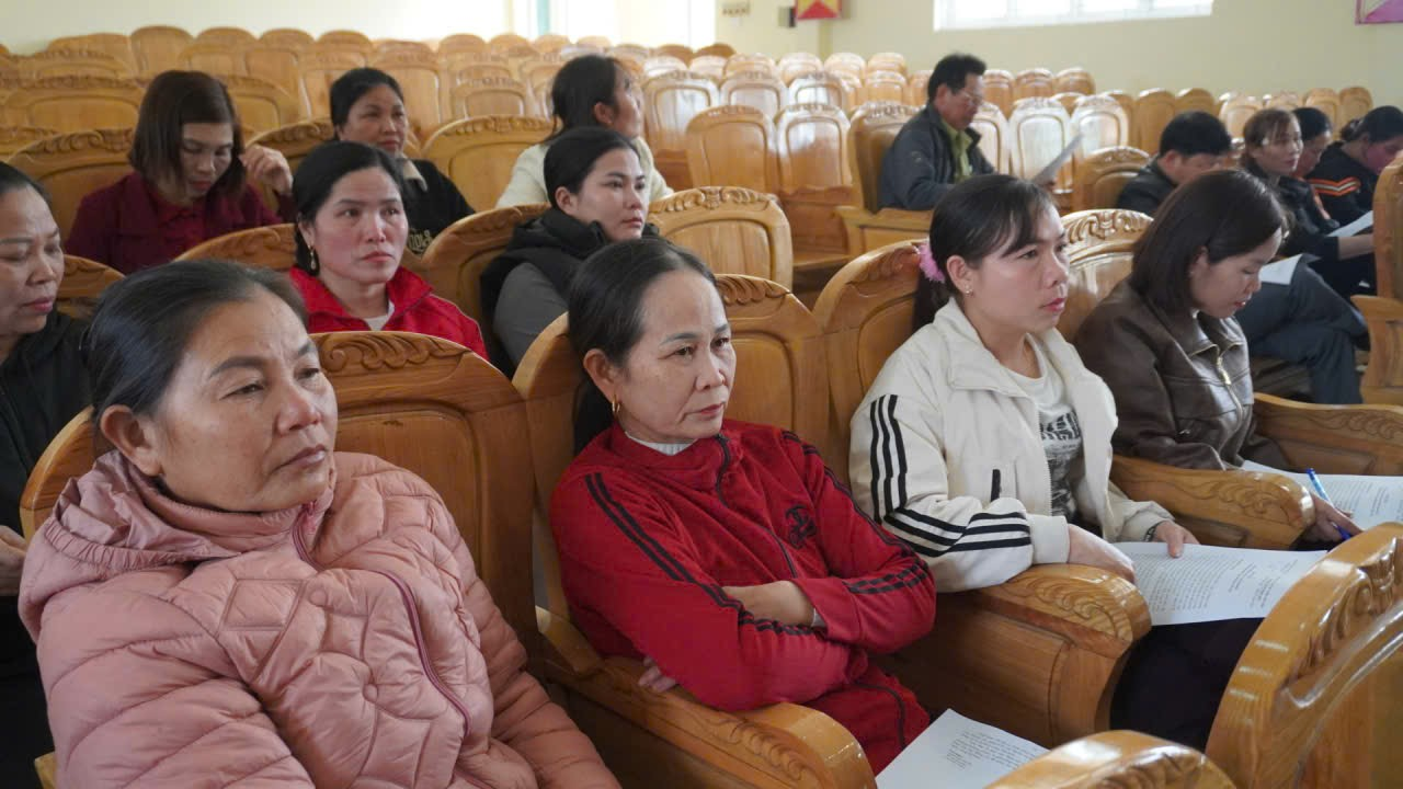 Đồng chí Nguyễn Viết Sơn, Ủy viên Ban Thường vụ Đảng ủy, Chủ tịch Ủy ban MTTQ xã cùng các đại biểu dự hội nghị