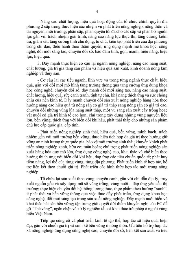 3. Đẩy mạnh thực hiện cơ cấu lại ngành nông nghiệp, nâng cao năng suất, chất lượng, giá trị gia tăng sản phẩm và hiệu quả sản xuất, kinh doanh nông lâm nghiệp và thủy sản.