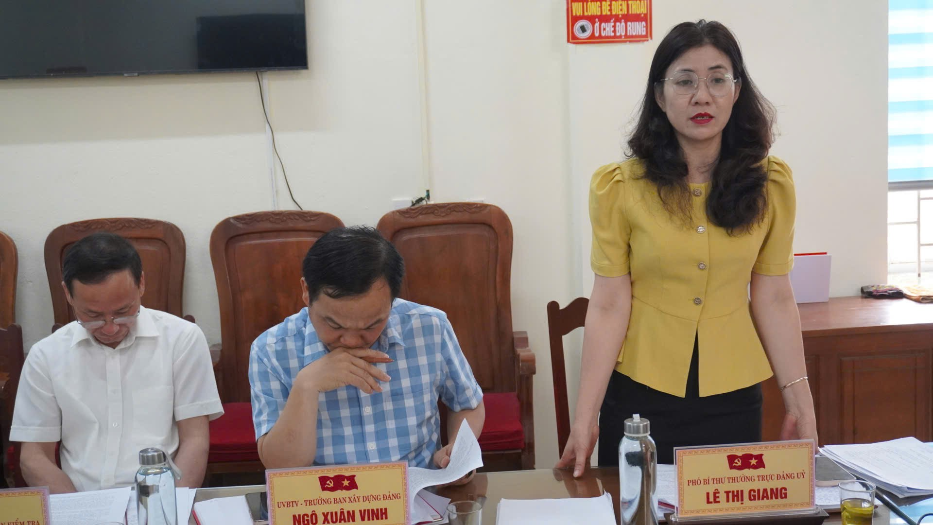 Đồng chí Lê Thị Giang Phó Bí thư Thường trực Đảng uỷ phát biểu tại hội nghị