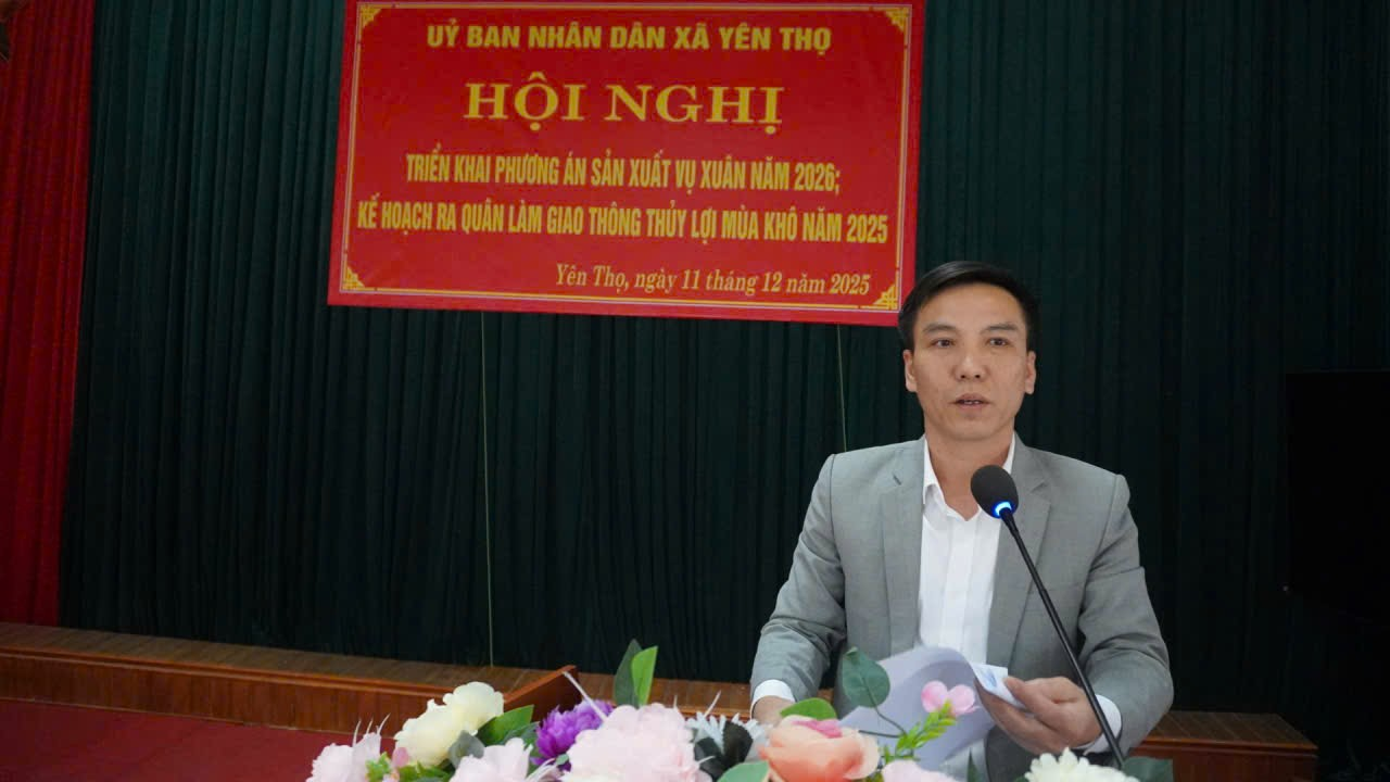Chiều 11/12/2025, UBND xã Yên Thọ đã tổ chức Hội nghị triển khai phương án tổ chức sản xuất trồng trọt vụ xuân năm 2026. Kế hoạch làm giao thông thuỷ lợi mùa khô năm 2025