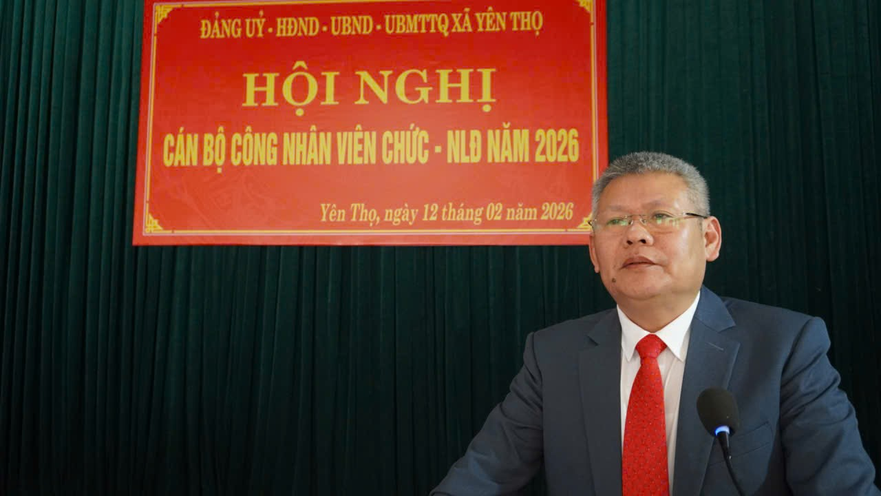 Chiều 12/02/2026, xã Yên Thọ tổ chức Hội nghị cán bộ, công chức, người lao động năm 2026 nhằm đánh giá toàn diện kết quả hoạt động của cơ quan Đảng ủy – HĐND – UBND – Ủy ban MTTQ xã sau hơn 7 tháng thực hiện mô hình chính quyền địa phương hai cấp; đồng thời đề ra phương hướng, nhiệm vụ trọng tâm trong thời gian tới.