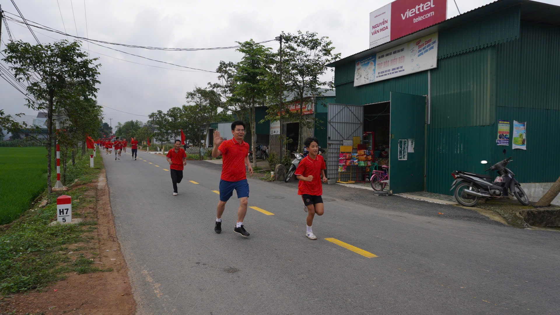Cán bộ, vận động viên và Nhân dân xã Yên Thọ tham gia chạy hưởng ứng Ngày chạy Olympic vì sức khỏe toàn dân năm 2026 trên tuyến đường của xã