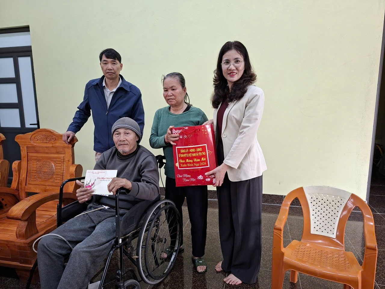 Từ nguồn quà của tỉnh, của Chủ tịch nước và của xã, đối với người có công với cách mạng và các gia đình chính sách được tặng 1 suất quà Tết kèm theo tiền mặt trị giá 1 triệu 300 nghìn đồng/người; đối với hộ nghèo, mỗi hộ được nhận 1 suất quà và 500 nghìn đồng tiền mặt. Việc trao quà được thực hiện công khai, đúng đối tượng, kịp thời, góp phần chia sẻ khó khăn, động viên các gia đình đón Tết Nguyên đán Bính Ngọ năm 2026 vui tươi, đầm ấm