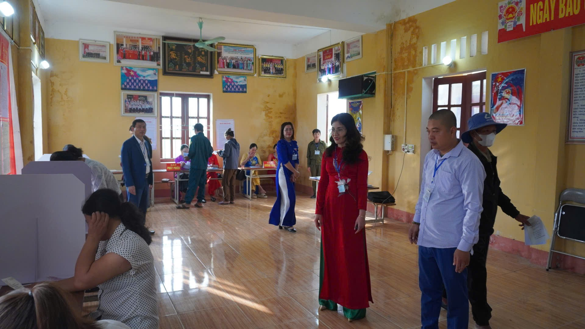 Ngay sau khi dự lễ khai mạc và thực hiện quyền bỏ phiếu, Phó Bí thư Thường trực Đảng ủy  Lê Thị Giangcùng các đồng chí được phân công phụ trách đã trực tiếp đi kiểm tra công tác tổ chức bầu cử tại các khu vực bỏ phiếu, các tổ bầu cử trên địa bàn xã. Qua kiểm tra cho thấy công tác bầu cử được triển khai nghiêm túc, đúng quy định; không khí ngày bầu cử diễn ra dân chủ, an toàn. Bà con Nhân dân phấn khởi tham gia bầu cử, thể hiện niềm tin tưởng và kỳ vọng lựa chọn được những đại biểu tiêu biểu, xứng đáng đại diện cho ý chí và nguyện vọng của Nhân dân.