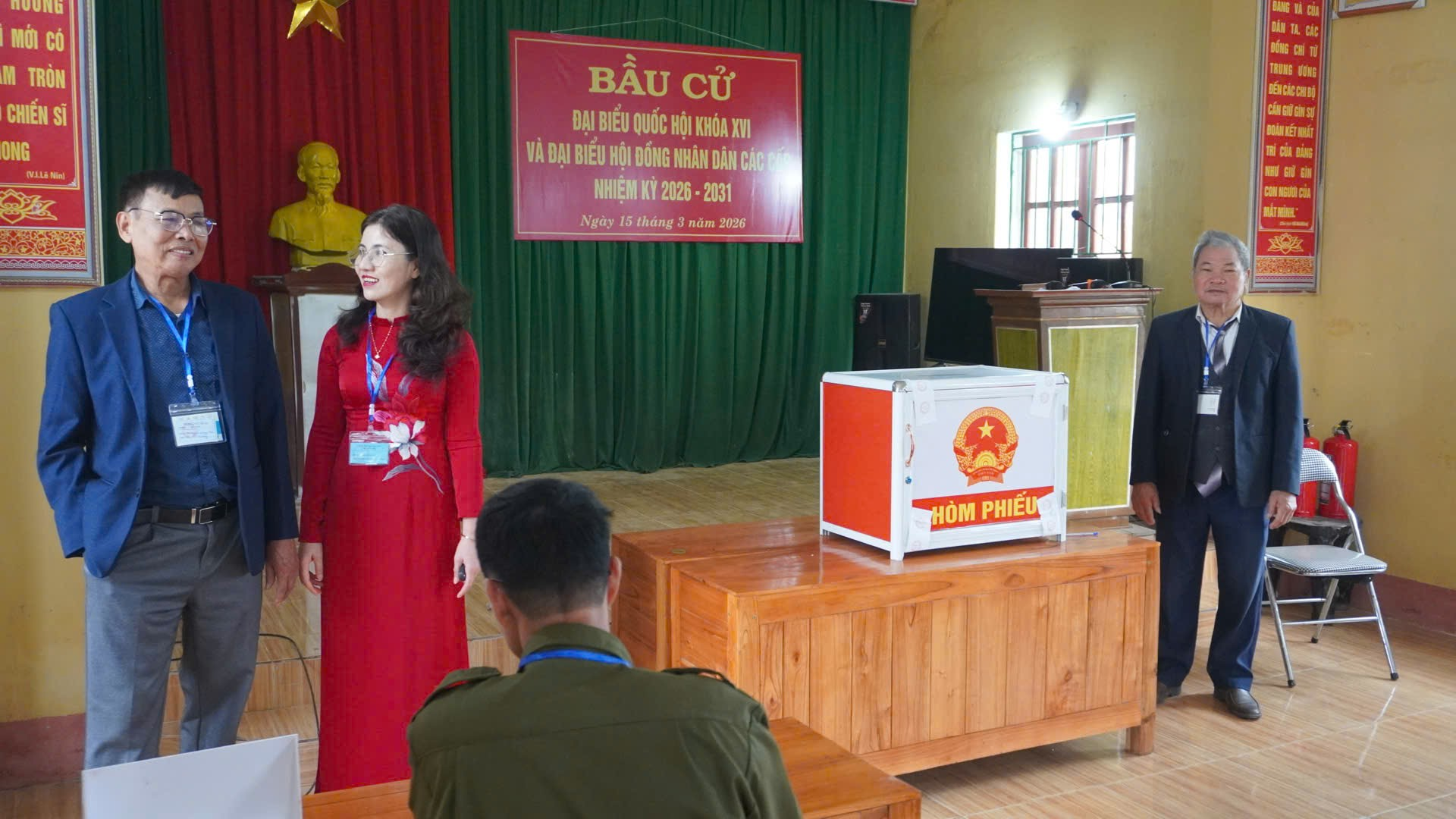 Đại diện cử tri kiểm tra hòm phiếu trước khi tiến hành bầu cử đại biểu Quốc hội khóa XVI và đại biểu HĐND các cấp, nhiệm kỳ 2026–2031.
